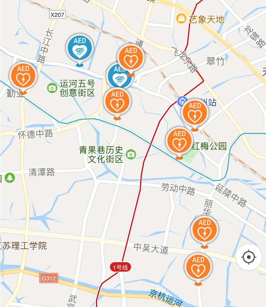 Distinctive designs citywide. 24/7 “Train Head” toilet at Changzhou North Railway Station (with water/seats). “Third Toilet” (elderly/children/disabled-friendly) at Xuejia Central Park. Clear signage; some have face-scanning tissues/weather mirrors.